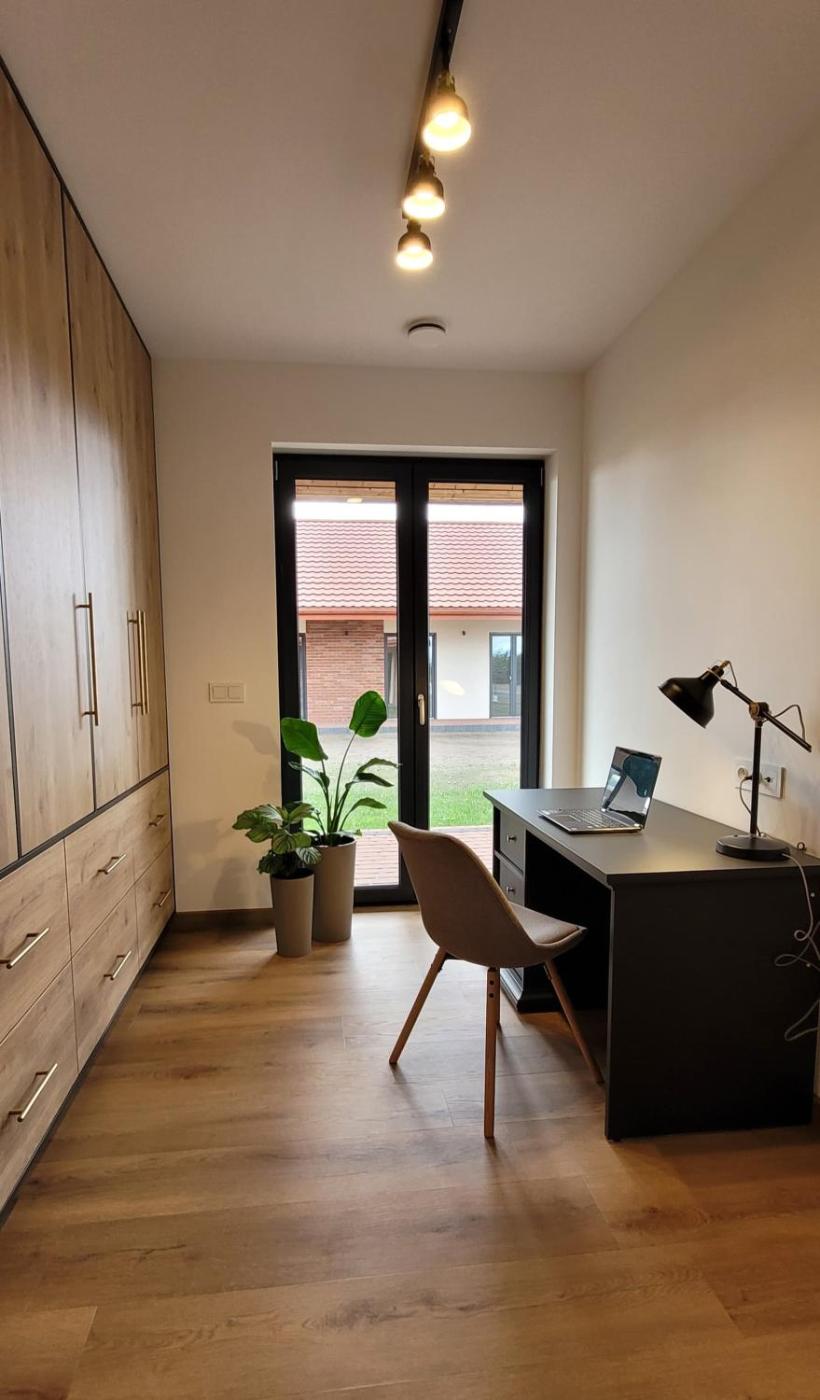 Dom z 3 sypialniami. Featuring a private entrance, this air-conditioned holiday home comprises 1 living room, 3 separate bedrooms and 1 bathroom with a bath and a shower. The holiday home provides a washing machine, a tea and coffee maker, a seating area as well as a terrace with garden views. The unit offers 4 beds. Dom wakacyjny - 2 osobowy. Powierzchnia pokoju ok.: 100 mkw. ;