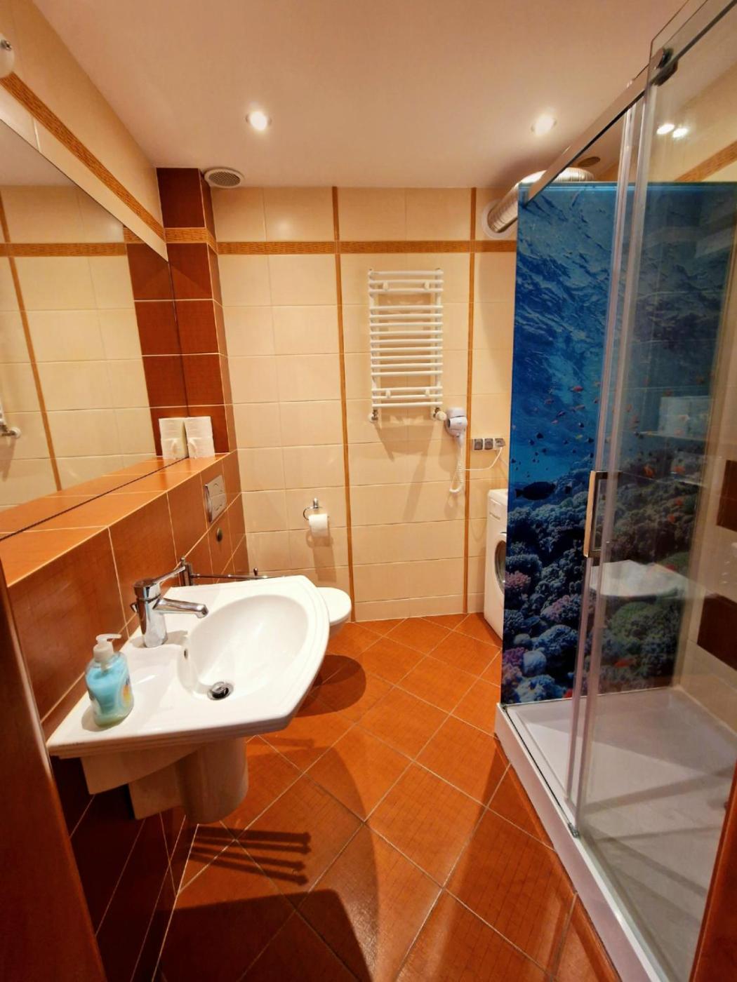 Apartament. This air-conditioned apartment features 1 living room, 1 separate bedroom and 1 bathroom with a walk-in shower. In the fully equipped kitchen, guests will find a stovetop, a refrigerator, a dishwasher and kitchenware. This apartment has a washing machine, a tea and coffee maker, a flat-screen TV with cable channels and a balcony. The unit has 4 beds. Apartament - 6 osobowy. Powierzchnia pokoju ok.: 58 mkw.