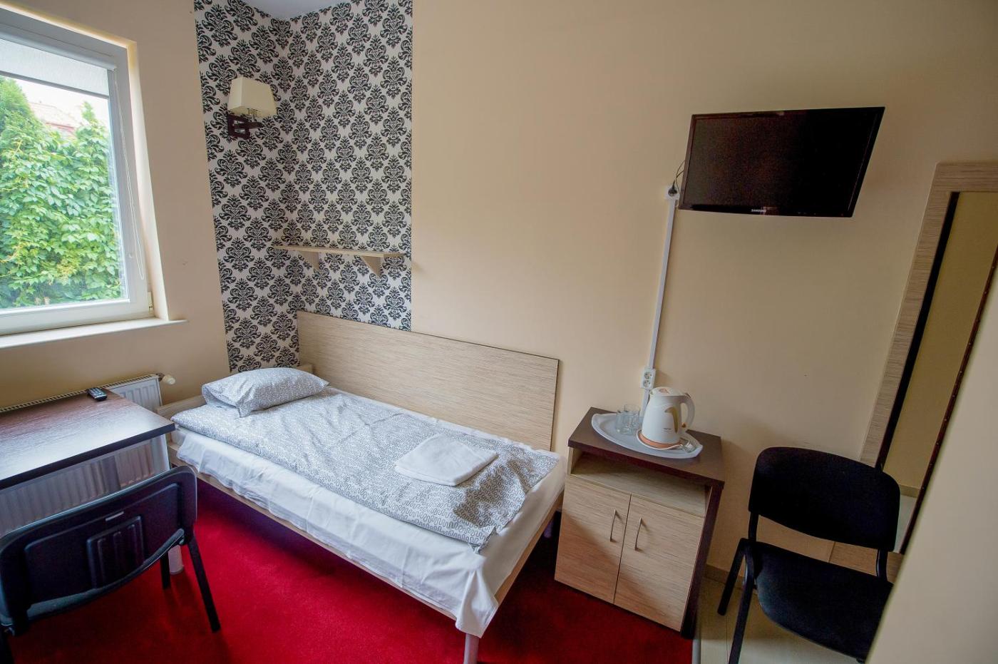 Pokój jednoosobowy. This single room features a desk, an outdoor dining area, garden views and a private bathroom. The unit offers 1 bed. Pokój Jednoosobowy - 1 osobowy. Powierzchnia pokoju ok.: 12 mkw.