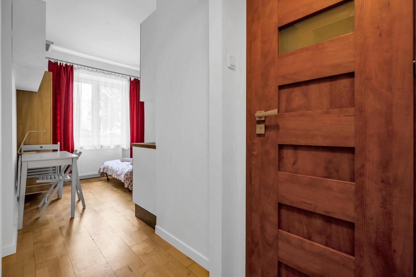 Studio. The studio features a washing machine, a dining area, as well as a private bathroom boasting a shower and a hairdryer. Guests can make meals in the kitchenette that has a stovetop, a refrigerator, kitchenware and an electric kettle. The studio provides a wardrobe, heating and a quiet street view. The unit has 1 bed. Studio - 2 osobowy. Powierzchnia pokoju ok.: 15 mkw.